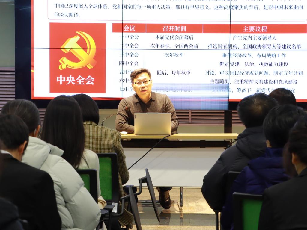 (创新创业教育中心)在汇文楼创客空间开展党的二十届四中全会精神宣讲活动。学院邀请马克思主义学院教授侯宪利进行专题宣讲,学院全体教师、学生党员代表参加学习,宣讲会由学院党委书记綦明霞主持。