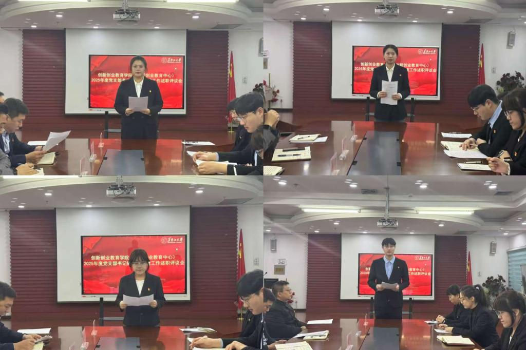 (创新创业教育中心)召开2025年度党支部书记抓基层党建工作述职评议会,学院党委委员、党支部书记、党员代表参加会议,会议由学院党委书记綦明霞主持。