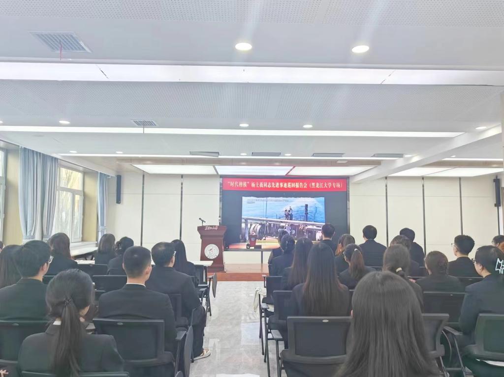 组织师生观看“时代楷模”杨士莪同志先进事迹巡回报告会。
