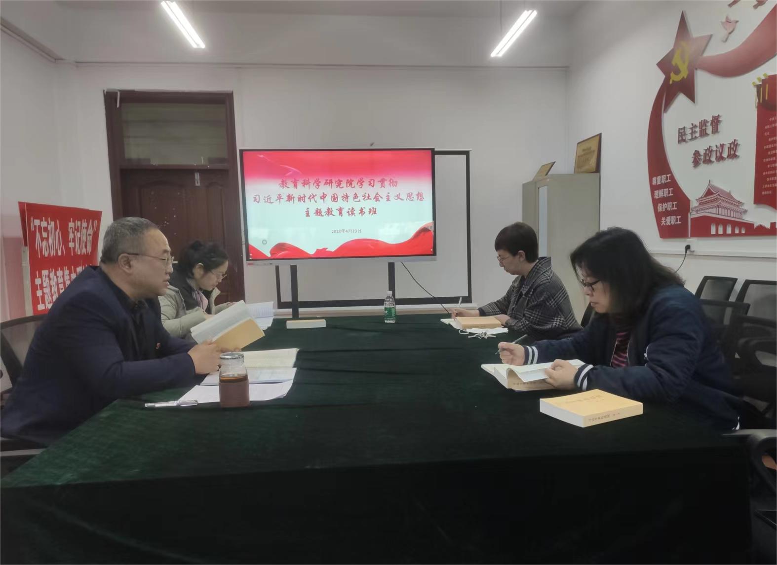 2023年4月19日至2023年4月25日,教育科学研究院领导班子开展专题读书班,重点学习了《习近平新时代中国特色社会主义思想专题摘编》、《习近平著作选读》第一卷、《习近平著作选读》第二卷、《中国共产党章程》等,学院党总支书记金鹏主持,学院院长王世红、党总支副书记付丽、副院长佟玉英参加学习。