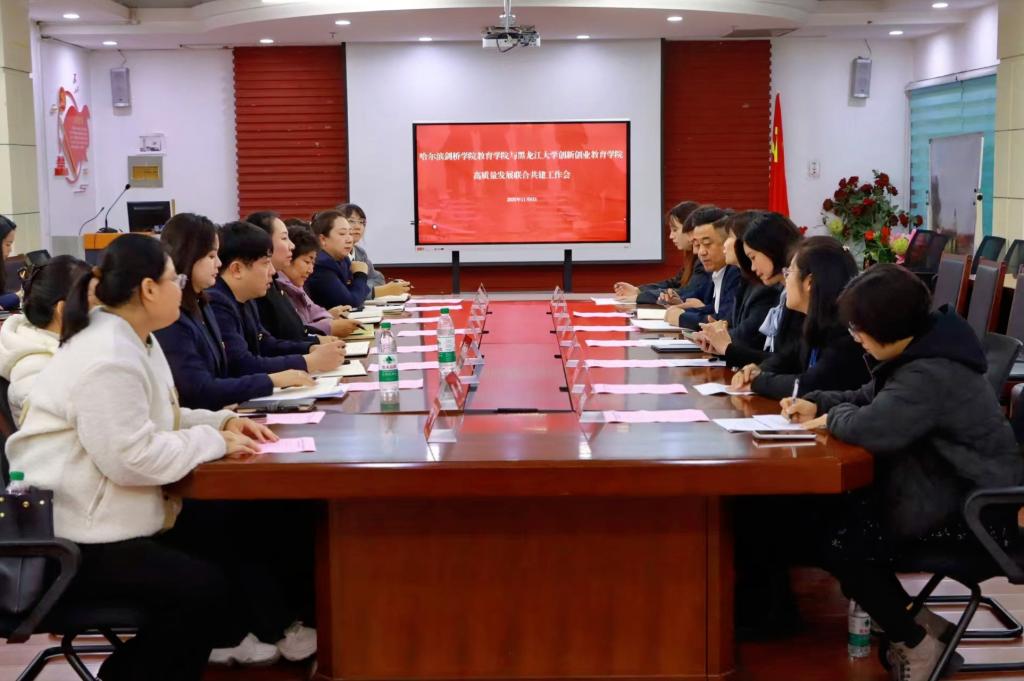 (创新创业教育中心)与哈尔滨剑桥学院教育学院联合开展高质量发展共建活动。两院领导班子、党务干部及师生代表共计50余人参与本次活动。