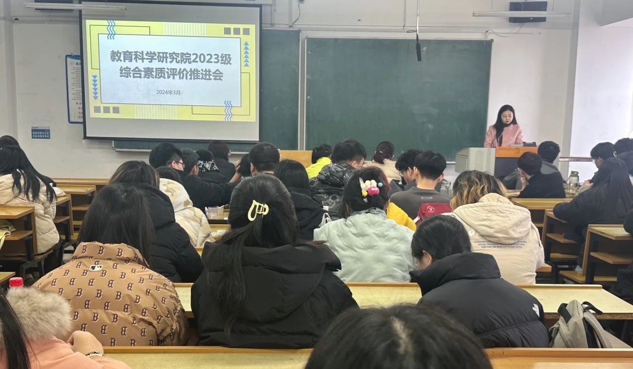 为了更好地落实立德树人根本任务,引导学生树立正确的人生观和价值观,规范学生的日常行为,促进学生认识自我与自主规划学业生涯,教育科学研究院于2024年3月召开各年级综合素质评价工作推进会。本次会议由各年级辅导员主持,学院全体学生参加。