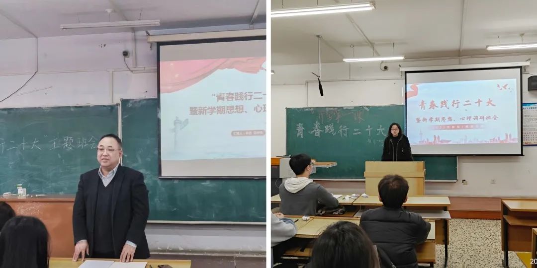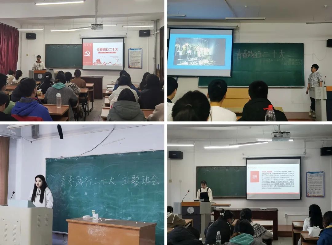 为深入学习贯彻党的二十大精神,加强对学生的思想引导和价值引领,弘扬爱国主义精神,增强班级凝聚力,了解同学们新学期思想、心理动态,教育科学研究院于3月中旬开展“青春践行二十大”主题班会,各年级以班级为单位组织开展,院党总支书记金鹏、院长王世红、党总支副书记付丽、各年级辅导员到会并给予指导,新生班主任、全体学生参加。