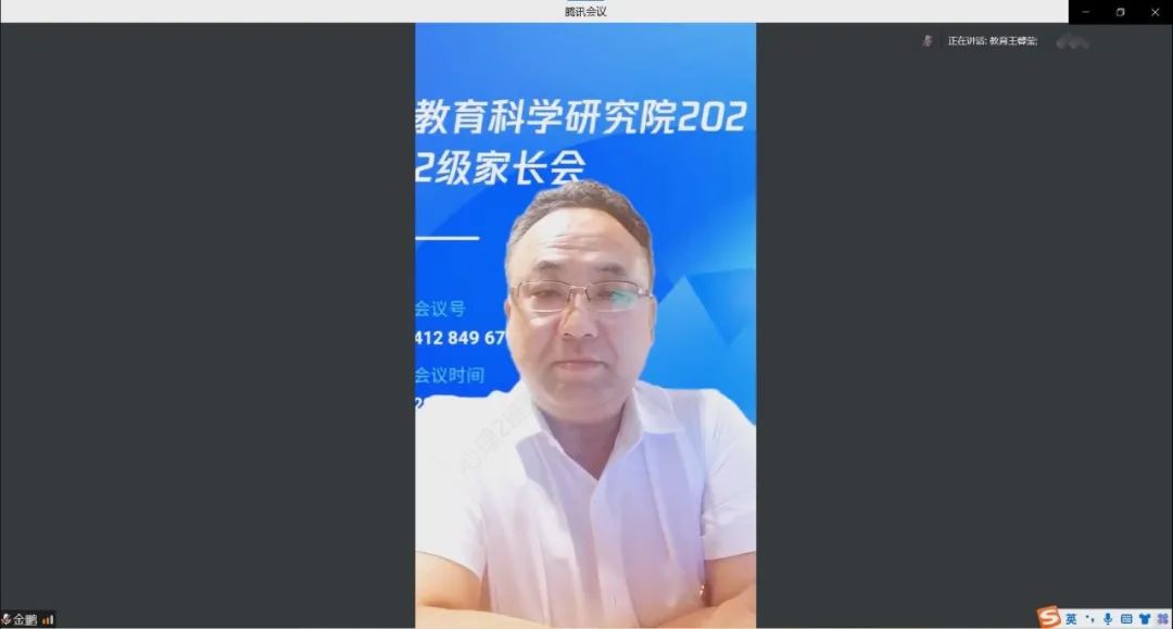 为使2022级新生家长对学校和学院的整体概况、专业特色、人才培养等有更全面的了解,进一步促进家校联动工作的开展,筑牢“家校桥”,合力育人促成效,教育科学研究院于2022年8月27日19时30分召开线上2022级新生家长会,本次会议由学院党总支副书记付丽主持,党总支书记金鹏、院长王世红、副院长佟玉英、2021级、2022级辅导员王馨莹及2022级全体学生家长出席家长会。
