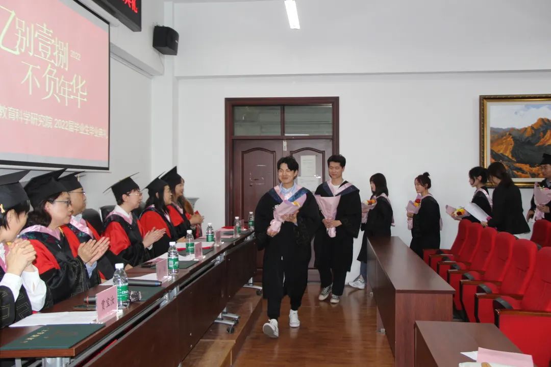 岁月不居、时节如流,时光在四季交替中雕刻出最珍贵的青春记忆。夏风轻拂中,一场特殊的毕业季就此来临。2022年5月30日14时,教育科学研究院2022届毕业生毕业典礼在汇文楼937举办。本次典礼由院党总支副书记付丽老师主持,院党总支书记金鹏老师、院长王世红老师、副院长佟玉英老师、综合心理实验室主任谢念湘老师、学院教学秘书贾宝汝老师出席本次典礼,学院2022届毕业生同学及家长参加了典礼。