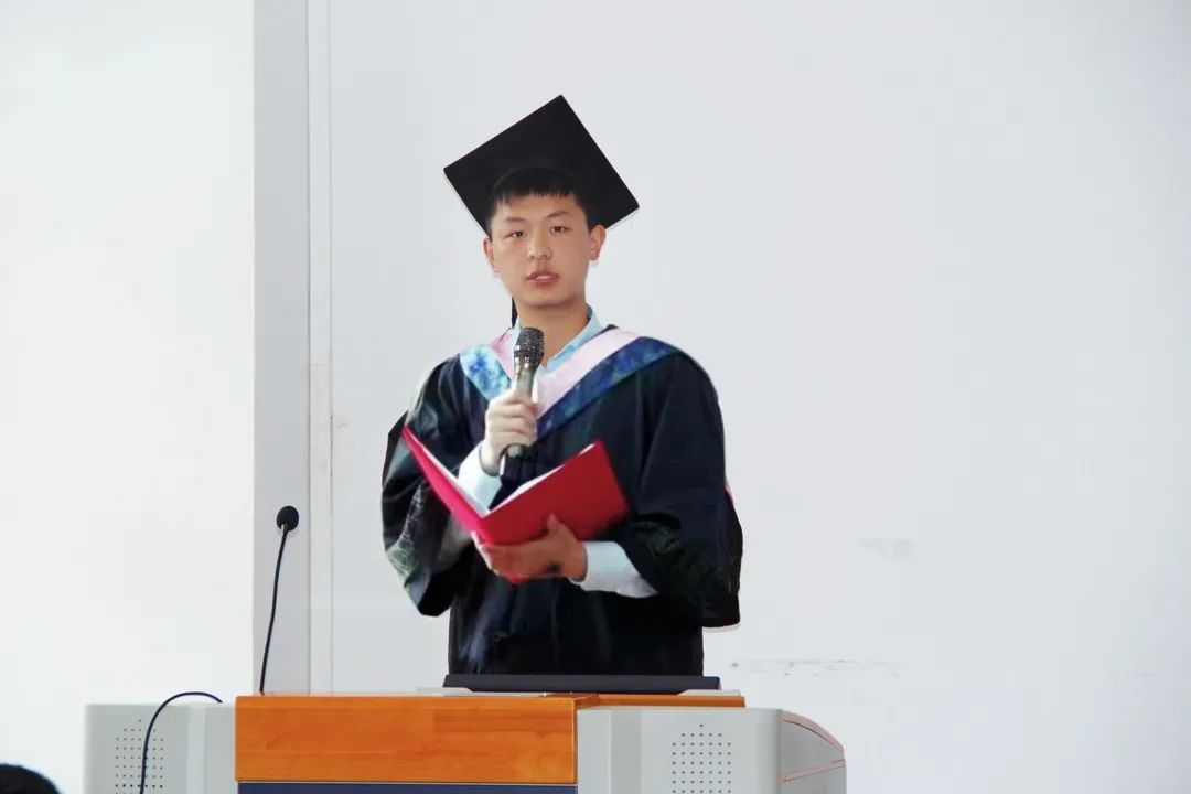 随后,院教学秘书贾宝汝老师代表全院教师发言,祝贺同学们顺利毕业,开启人生新征程!希望同学们以校友的身份常回家看看,让我们共同见证母校的发展,共同分享同学们成功的喜悦。同时,贾宝汝老师表示心中有志,脚下才有根,才能行稳致远,希望同学们始终不要满足在实现一个个“小目标”中,获得人生的“小确幸”,而要取志于凌云,存心于高远,坚持把个人奋斗融入实现中华民族伟大复兴的时代洪流,在波澜壮阔的伟大历史进程中成就精彩人生。