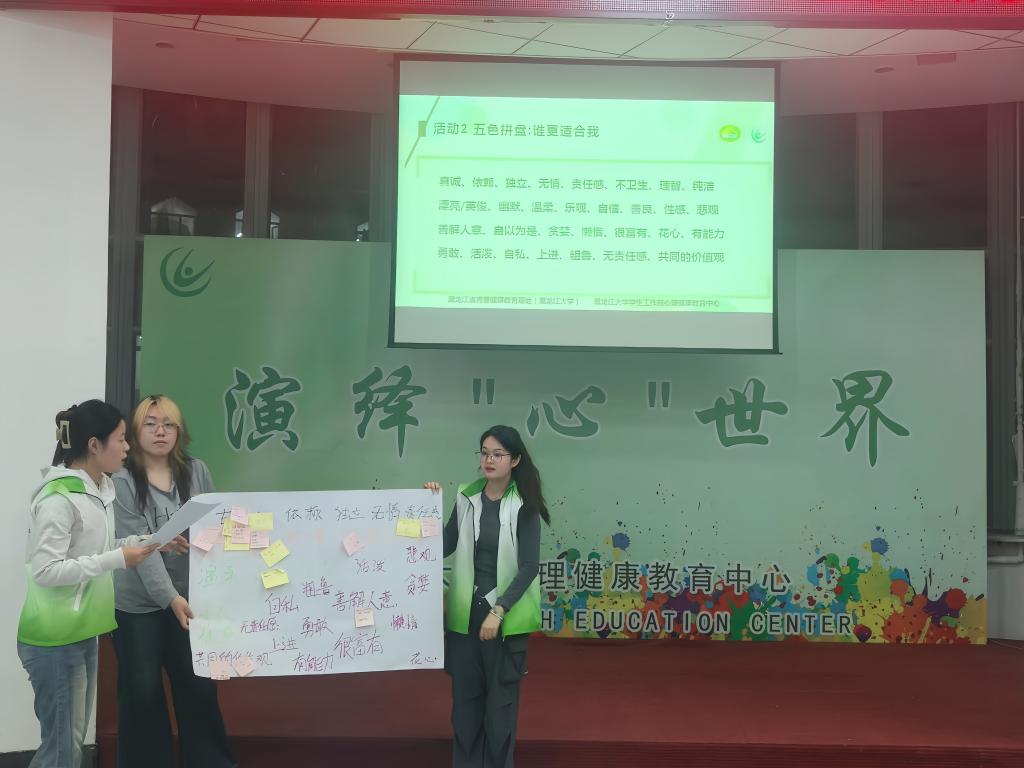 在“五色拼盘:谁更适合我”环节中,参与者通过逐层筛选伴侣核心特质,深度探讨性别视角下的择偶偏好,旨在引导学生以理性视角审视恋爱择偶标准,深刻理解共同价值观、性格匹配度等要素对长期亲密关系的决定性作用,为构建科学恋爱观奠定认知基础。