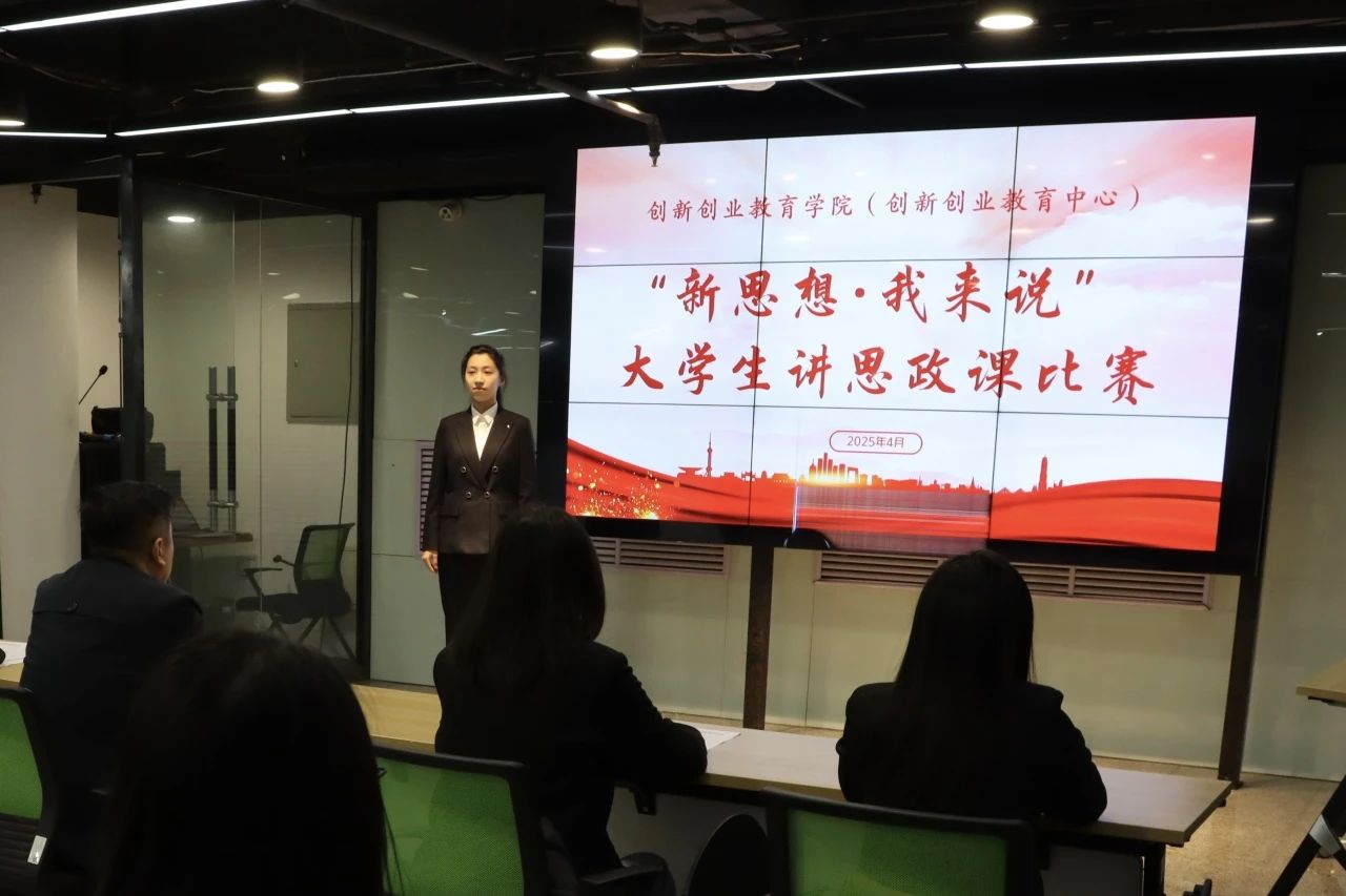 (创新创业教育中心)于4月27日在“创翼”师生创客空间举办“新思想·我来说”大学生讲思政课比赛。本次比赛由学院党委副书记屈广宁、院团委副书记梁曼、王馨莹、宋美琪、周子林担任评委。