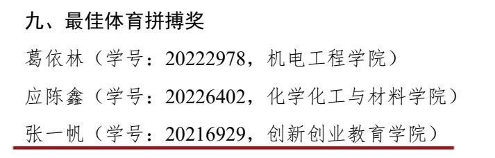 经过材料审核、现场答辩和评审委员会评审,学院2021级教育学专业张一帆同学荣获“最佳体育拼搏奖”荣誉称号。